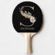 Letter S monogram floral. Letter S in golden brown texture accented with green watercolor compound leaves, flower blossoms and gold dust. Personalized with name in matching font.