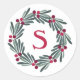 “S” Monogram Holly Berry Wreath Classic Round Sticker