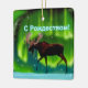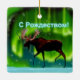 S Rozhdestvom - Northern Lights Moose Ceramic Ornament