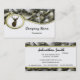 Stylish camouflage deer taxidermy business cards featuring an 8 pt buck encircled in gold on a gold & black & white camouflage background edged with s shaped gold accent that can be customized with your choice of text style and colour for all your business needs whether you are a taxidermist, wildlife park owner, hunting lodge or wildlife preserve!
