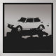 Dessin numérique original d'un Saab 99 EMS 1974, dans un dégradé gris argenté sur un arrière - plan noir de charbon.