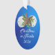 Dollars de sable et étoiles de mer personnalisés ovale forme tropicale ornements de Noël. Joli dégradé bleu arrière - plan avec coquillages de plage swag et libellé personnalisé. L'image et le texte seront imprimés des deux côtés. Utilisez pour commémorer un voyage spécial, un premier Noël ou une autre occasion. D'autres formes fonctionneront, comme le coeur et le rond. L'ornement s'imprime comme vous le voyez - gardez le texte à l'écart des arêtes ou il peut ne pas imprimer.