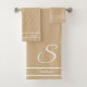 Design moderne Tan Sand Beige n Blanc Monogramme initial et nom de famille Serviette de bain, design par Sandy Closs