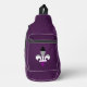 Sling Bag with fleur-de-lis (fleur-de-lys or lily flower) symbol with rainbow stripes of black, gray, white and purple from asexuality flag; ace pride design on purple background