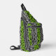 Ce sac à élingue présente un look surprenant et tendance, mis en valeur par des bandes verticales pixelisées numériques abstraites et attrayantes, dans un coloris vert vif, gris bicolore et noir riche. Le design distinctif crée non seulement un fort impact visuel, mais garantit également que ce sac sera remarqué partout où vous allez, ce qui en fait une option fantastique et à la mode pour tout événement ou situation.