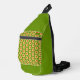 Ce sac à carrosserie vert citron avec poche zippée va où vous allez en vélo et randonnée et dispose à l'avant, poche zippée l'image d'une fleur jaune Dahia imprimé dans un motif extensible sur un arrière - plan solide et vert citron. Un design floral et amusant !