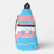 Sac à élingue avec le drapeau de la fierté transgenre avec peu de coeur au centre du design. Drapeau rose, blanc et bleu du mouvement de la fierté trans ; avec un champ de texte modifiable pour votre nom ou message