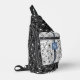 Un motif floral chic et féminin à l'esthétique dessinée à la main. Ce motif classique en noir et blanc a une sensation moderne adoucie avec l'apparence d'esquisse texturée de la ligne. Le style de sac à élingue fait un accessoire de voyage pratique. Customisez ce mignon sac avec l'initiale du propriétaire en bleu clair pour plus de détails personnels.