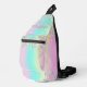 Unicorn Holographic Parties scintillant Sling Bag - Un Sling à la mode couleur étincelante avec mélange de turquoise, rose et mauve et parties scintillant jaune clair. Vous pouvez personnaliser ce Sling Bag en ajoutant votre nom et vos initiales.