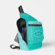 Aqua pour filles modernes et pois blanc point et nom sac de carrosserie croisée. Personnalisez avec votre propre nom et votre initiale. Voici l'exemple : Lauren B. Design par Sarah Trett pour www.mylittleeden.com