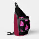 This black and dark red crossbody sling bag with zippered pocket that features a red, autumn Maple leaf pattern on a black background goes where you go when biking and hiking. Side panels are a dark red. Back of sling bag is black. A colorful, botanical design!