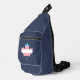 Sling Bag with maple leaf from flag of Canada in the colors of transgender rainbow flag of pink, blue and white; trans pride lgbtqiap+ design,