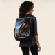 Un dragon majestueux avec des écailles en cuivre, or et noir sur un bord de falaise avec le ciel bleu derrière.