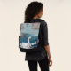 Ce sac à dos Bold Face avec une face avant interchangeable a un élégant cygne mère blanc nageant dans un étang avec de l'eau bleue le long de son cygne bébé entouré d'arbres.