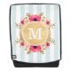 Sac à dos avec motif rayé à la menthe, fleurs rose aquarelle et faux feuille d'or monogramme personnalisé.