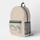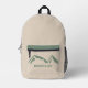 Si vous aimez le randonnée, le sac à dos et les aventures en plein air, obtenez ce sac à dos brun clair avec des montagnes vertes et du texte personnalisable.