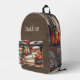 Ce sac à dos est parfait pour les amateurs de livres, avec son motif fantaisiste de livres et de pommes empilés sur une étagère. L'Arrière - plan est un faux daim brun, complet avec couture. Personnalisez-le avec votre nom en haut.
