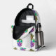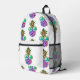 Sac à dos d'ananas rose-violet tropical - Rencontrez notre adorable ananas violet, en rocquant une paire de lunettes de soleil cool avec une torsion de plage! A l'ombre, une scène de plage sereine avec de l'eau scintillante et un palmier balançant. La teinte violette unique de l'ananas reflète la surface scintillante de l'océan, ce qui fait de ce design un mélange parfait de vibes tropicales et de charme ludique. Idéal pour les amateurs de couleurs et de fantaisie.