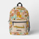 Ajoutez un nom pour créer un sac à dos personnalisé amusant. Ce design de style rétro présente de jolies illustrations d'un assortiment d'oiseaux de la jungle, de lions, de girafes, de zèbres, d'éléphants, de crocodiles, de serpents, de singes et plus encore dans les tons bleu aqua, jaune doré, orange, brun et pêche sont placés contre un arrière - plan couleur crème. La poche avant a un crocodile graphique au-dessus de votre propre texte personnalisé.
