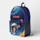 Need birthday party ideas for your boy? This spectacular photo personalized backpack with an astronaut and space theme, featuring an illustration of an astronaut in deep space with a photo template on the visor, floating among planets, is just the ticket. Celebrate your budding astronaut with this planets and deep space theme that will make him happy, if he is crazy about all things planets, rockets, space and astronaut suits. The perfect birthday gift for a boy or girl, or as a Christmas or back to school.