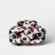Ce sac à dos de football cool est équipé d'un motif aléatoire de marron de taille variable, de balles de football noir et blanc tournées à chaque sens sur un arrière - plan noir - personnaliser avec le monogramme du joueur de football - par katz_d_zynes