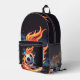 Sac À Dos Imprimé Ballon de football volant avec flammes.
