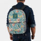 Ce sac à dos mignon et rétro est muni d'un monogramme sur un arrière - plan bleu avec motifs à cassette. Un cadeau parfait pour les amateurs de musique ! Personnalisez-le selon vos besoins.