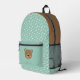 Une adorable illustration d'ours prend le devant de la scène sur un arrière - plan de pois turquoises bleus et blancs. Facile à personnaliser avec un nom.