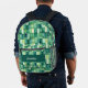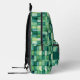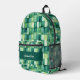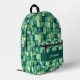 Des carrés aquarellés dans les tons vert, crème et un peu bleu créent un sac à dos moderne, élégant et oh-so-chic. Personnalisez avec votre nom dans une bande verte en haut. Parfait pour l'école ou le randonnée !