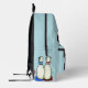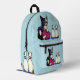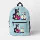Un chat ludique tient une boule de bowling rouge, assis à côté de deux épingles de bowling étonnées avec des rayures bleues et rouges.