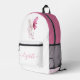 Magnifique sac à dos de classe de ballet personnalisé qui comporte une aquarelle de pantoufles de ballet rose et son nom dans un joli script rose avec des swashes. Si nécessaire, vous pouvez ajuster la taille de la police de script dans l'outil de conception pour des noms plus courts ou plus longs.