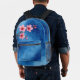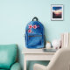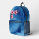 This floral feminine backpack features watercolor painted pink cherry blossoms an butterflies on a blue watercolor background. Customize it with your name at the side.