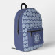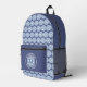 Conception de sac à dos unisexe mignonne avec deux lignes de texte personnalisables pour "Champion de Pickleball" ou une citation personnalisée au choix et un nom ou un texte personnalisé dans une police moderne intemporelle en arc de cercle au-dessus et en dessous d'une image d'une balle de pickleball bleu clair. Le fond sur le devant et les côtés coordonne le bleu foncé et le blanc colorés. Ajoutez une ou deux initiales au centre de la conception sur l'image de la balle. Les combinaisons d'initiales plus grandes peuvent devoir être réduites pour l'espacement. TOUTES les couleurs de cette conception sont personnalisables, y compris les trous dans la balle ! Contactez-moi pour des questions ou des demandes de couleurs personnalisées.