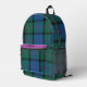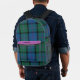 Élégant sac à dos en motif tartan bleu, vert, noir et mauve fait dans le clan MacThomas motif. Personnalisez le texte personnalisé, sur la bande d'accent mauve, pour répondre à vos besoins. Super idée cadeau pour elle.