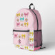 Sac à dos imprimé Monogramme pour filles colorées et mignonnes, avec des crayons à arc adorables et des marguerites joyeuses dans le style coquette rétro en blanc, rose, bleu et jaune. Personnalisez facilement le texte ou laissez-le vide. - Kate Eden Art