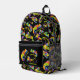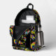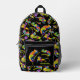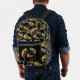 Ajoutez de la couleur à n'importe quel jour avec ce sac à dos illustré. Il présente un tout motif de caméléons de dessins animés mignons aux couleurs vives et vives, dressés contre un arrière - plan noir. La poche avant est prête à être personnalisée avec un nom, des initiales ou d'autres textes.