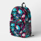 motif de crâne coloré et chaotique. Les crânes sont en majorité bleus avec des nuances variées de taches et gouttes roses et violettes. Certains crânes ont des dents cassées et des os cassés, ajoutant à la nature macabre et horrible de l'image. L'arrière - plan est noir, ce qui aide à mettre en évidence les crânes et à faire pop les couleurs.