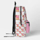 Un somptueux sac à dos personnalisé avec des cupcakes à la vanille rose surmontés de biscuits à puce au chocolat, entourés de bonbons au chocolat et d'accents colorés.