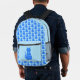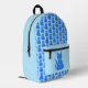 Ce sac à dos impressionnant présente une image art numérique d'un mignon chat bleu avec une queue bouclée. Ses yeux sont bleu pâle avec des élèves noirs. Il porte un arc rose dans ses cheveux et un collier bleu brillant autour du cou avec un jeton bleu dessus. Le design est parfait pour célébrer un bébé garçon. Il y a du texte personnalisé sur le chat pour que vous puissiez inclure votre propre message. Le message par défaut indique Baby Boy.
