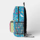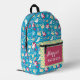 Ce mignon sac à dos bleu présente un motif fantaisiste aux papillons jaunes colorés, des coeurs aux rubans blancs, de jolies fleurs roses et des tasses jaunes contre un arrière - plan bleu joyeux. Personnalisez avec votre nom et une autre ligne de description.