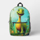 Joli Dinosaure Monogramme Enfants Sac à dos imprimé Un mignon dinosaure sur un arrière - plan vert de forêt. Le nom monogramme personnalisé est sur le côté peut être remplacé par votre propre nom ou texte personnalisé. Le cadeau ou l'accessoire parfait pour n'importe quel enfant.