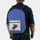 Sac à dos avec dessin avec illustration d'un pingouin volant un avion rouge ; illustré par Radka Kavalcova / MaxiHarmony