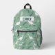 Make school time extra fun with this personalized dinosaur backpack! Featuring a seamless pattern of cute white dinos and tropical leaves on a sage green background, it's perfect for preschool and kindergarten. Add your child’s name for a unique back-to-school gift! Great for daycare, toddler adventures, and early learning.
