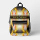 Ce sac à dos présente un design fractal dans le jaune vif combiné à l'orange sur l'arrière - plan noir rayé - une oeuvre moderne, délicate, numérique. Texte personnalisé. Un sac à dos unique pour tous !