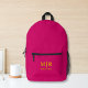 Élégant sac à dos imprimé Monogramme aux initiales rose et orange rétro! Ce sac à dos est un ajout élégant à votre garde-robe, avec un coloris rose chaud et orange vif qui vous fera ressortir. Avec son design monogramme personnalisé, vous pouvez présenter votre individualité où que vous alliez. Séjournez organisé avec plusieurs compartiments et poches, parfait pour transporter tous vos essentiels. Les sangles réglables assurent un ajustement confortable pour tous les types de corps, tandis que la construction robuste fournit un support fiable pour vos effets personnels. Que vous soyez à l'école, au travail ou en fin de semaine, ce sac à dos est à la fois à la mode et fonctionnel. Faites une déclaration avec notre Elégant Magenta Pink and Orange Initials Monogram Printed Backpack. Express-toi dans le style et tourne la tête partout où tu vas. Mettez à niveau votre jeu d'accessoires dès aujourd'hui ! Offrez-vous l'élégance et la fonctionnalité avec ce sac à dos Modern Girly Pink et Orange Monogram, un complément indispensable à votre collection d'accessoires.