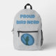 Sac À Dos Imprimé Fier Oiseau Nerd Gris Bleu Silhouette Birder