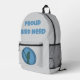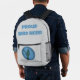 Ce sac à dos affiche une silhouette d'oiseau en gris contre un cercle bleu. "Fière Oiseau Nerd" apparaît au-dessus de l'image de l'oiseau et peut être facilement customisé. Conception originale - C. McGouldrick
