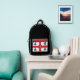 Backpack with the flag of Montreal, the most populous city in the province of Quebec, Canada. A white flag with a red cross, a white pine, a blue Fleur-de-lys, a red Rose of Lancaster, a shamrock, and a thistle