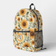 Un joli sac à dos rustique design de tournesol jaune. Le design se compose d'un motif homogène de tournesols jaunes fleuris et bleus et de feuillage vert. Ajoutez simplement des initiales pour un cadeau monogrammé pour faire un grand sac à dos amusant pour les élèves retournant à l'école. Idéal aussi pour les mariages et Bachelorette / fête des poules.