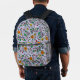 Joyful Backpack for Back to School or Cityscape - Flower Pattern orange Swirl Berry on a violet Background Design is hand drawn and shows a seamless repeating floral pattern with green leaves and round orange berries. The main colors in this Pattern are, green, orange, lilac, violet.